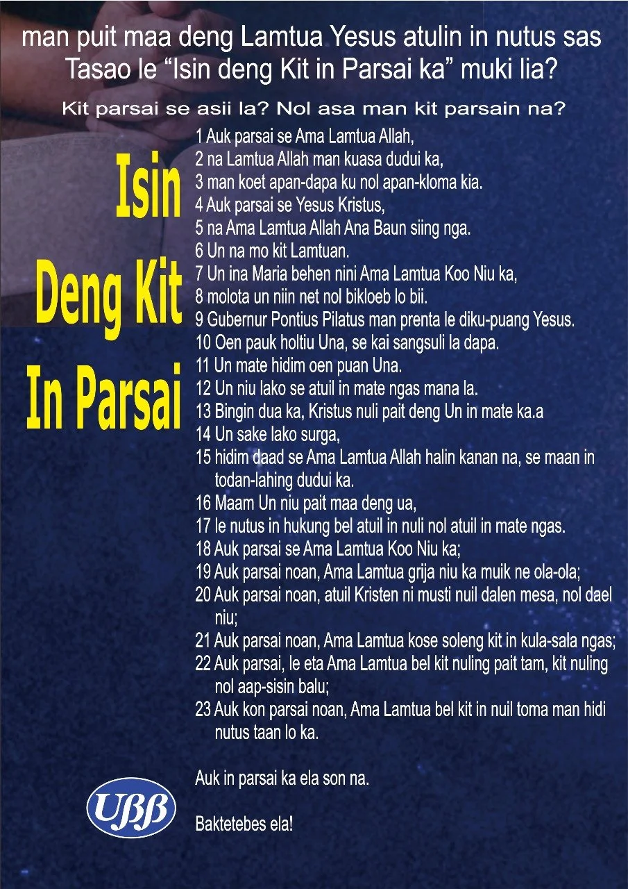 Pantai Liman Bahasa Helong Baca Alkitab Online Nonton Video Unduh Alkitab PDF Lihat Bahan Bahasa Unduh Lagu PDF Unduh Aplikasi Alkitab Pengakuan Iman Rasuli Pengakuan Iman Rasuli Bahasa Helong