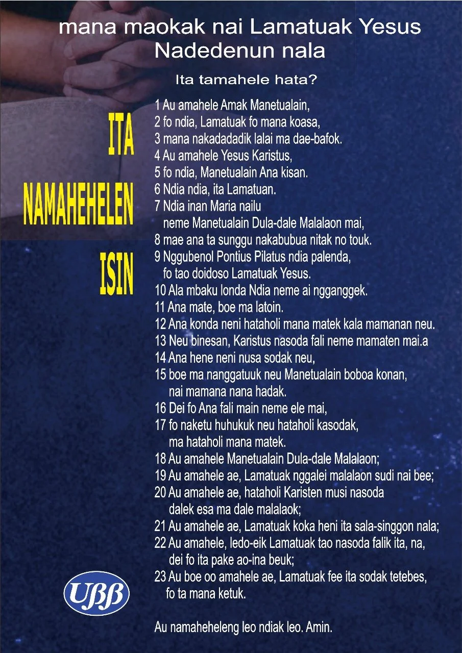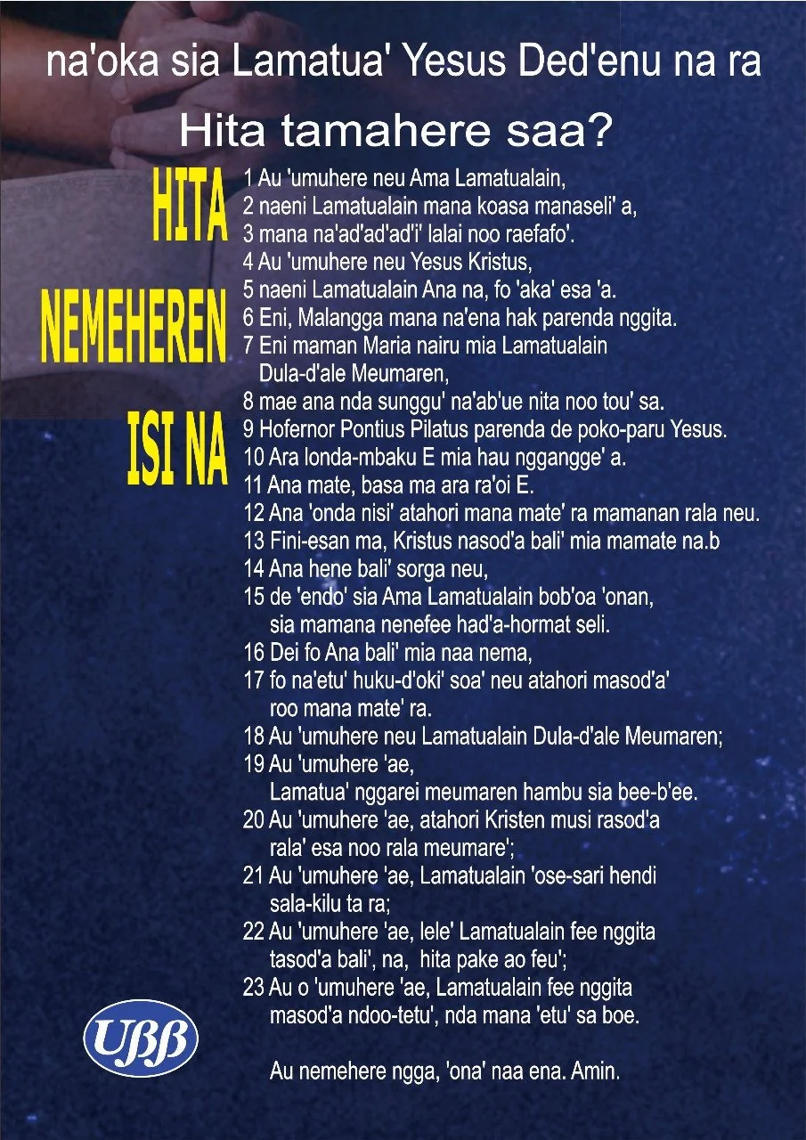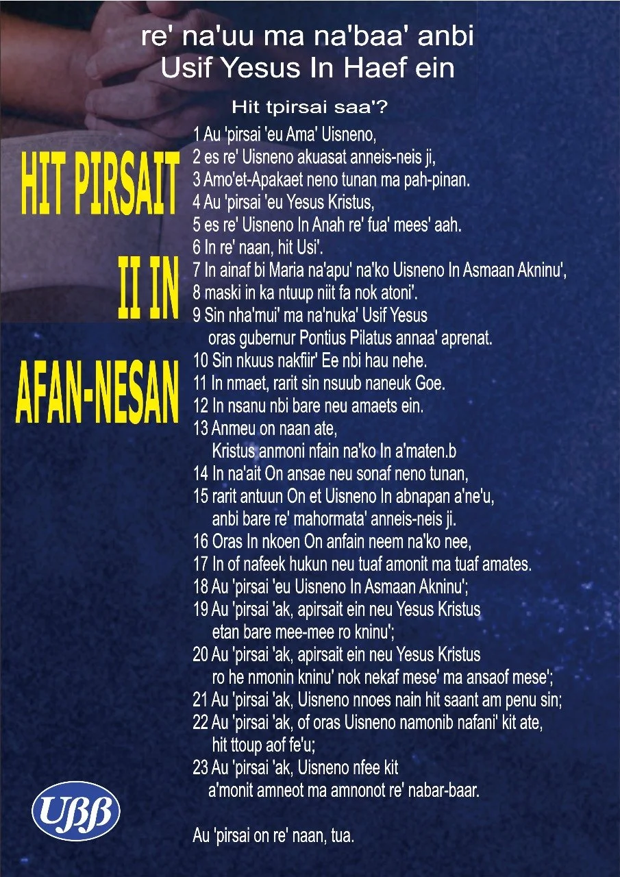 Apuri Pengakuan Iman Rasuli Bahasa Dela -Oenale Bahasa Dhao Bahasa Helong Bahasa Kupang Bahasa Rikou - Oepao Bahasa Tetun Bahasa Amarasi Kotos Bahasa Amanuban Bahasa Tii Bahasa Lole